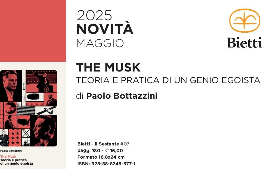 Nella prima parte del libro di recente uscita per la Collana il Sestante dell’Editrice Bietti The Musk. Teoria e pratica di un genio egoista, l’autore Paolo Bottazzini inquadra la figura del CEO di Space X e di Tesla come una lente di ingrandimento sulla concezione del mondo che domina la Silicon Valley e in buona sostanza la upper class americana. Elon Musk, personaggio inquietante, eccentrico, leader di masse più per la tracotanza delle sue azioni che per la razionalità del suo pensiero, incarna l’eroe prometeico descritto da Ayn Rand nei suoi romanzi più noti- La fonte meravigliosa e La rivolta di Atlante– la cui missione consiste nel rinnovare il mondo, trasformare la società liberandosi dalle convenzioni e dalle regole. E’ questa una precisazione indispensabile per capire lo spirito del capitalismo tecnologico ben radicato nel mondo americano. Sebbene in Europa Ayn Rand, scrittrice russa-statunitense, sia quasi sconosciuta, molte figure di rilievo dell’America contemporanea da Hillary Clinton a Steve Jobs, da Donald Trump a Elon Musk appunto, sono di fatto seguaci delle sue idee. E a questa negligenza è in parte dovuta l’incomprensione tra vecchio e nuovo mondo che ciclicamente si presenta nei rapporti tra le due sponde dell’Atlantico. I libri di Ayn Rand circolano nelle scuole americane come da noi accade per Dante o Manzoni, ma la cattura del suo pensiero non è facilmente decifrabile dal momento che rifugge da speculazioni teoriche privilegiando invece l’azione dell’uomo illuminato capace di disegnare modelli di vita reale più che offrire interpretazioni concettuali della realtà. Ma in Musk è presente anche il mito, l’illusione, il sogno. E’ un accanito lettore del Signore degli Anelli,- saga eroica dove ottimismo e determinazione, dedizione al dovere e lealtà, ostinazione e perseveranza anche nei momenti avversi, hanno poco in comune con la razionalità-, e affascinato dalla fantascienza degli anni Quaranta e Cinquanta. Sebbene Musk sia laureato in fisica, predilige l’ingegneria e agisce in controtendenza rispetto al processo in atto nella Silicon Valley tutto rivolto verso la leggerezza della tecnologia e a una quasi smaterializzazione delle macchine, secondo l’idea di Steve Jobs per cui “less is more”. Musk dipinge scenari abitati da macchine e manufatti importanti, tunnel, razzi, batterie, cavi, sempre avendo ben chiaro il suo percorso ingegneristico: pensiero-azione-trasformazione della realtà. Un visionario pragmatico convinto che i problemi dell’umanità possano essere risolti con la scienza e l’ingegneria senza bisogno dell’intermediazione politica, trasformando quest’ultima in un’esperienza simile a un evento mediatico. In questo senso il suo esasperato individualismo dà conto della definizione del sottotitolo del libro che fa un riferimento esplicito alla genialità egoista del protagonista.
