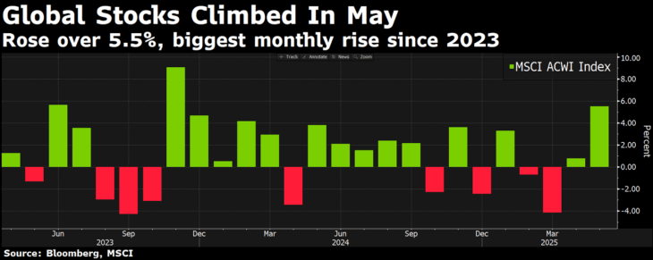 Se la settimana scorsa i riflettori erano puntati sul mercato obbligazionario e sulle crescenti preoccupazioni legate alla sostenibilità del debito americano, oggi l’attenzione si sposta in maniera più costruttiva sul fronte aziendale con la reporting season praticamente giunta al suo termine. Si chiude anche il mese di maggio che registra un S&P500 in rialzo del 6.15%, la migliore performance di maggio in oltre 30 anni ed una delle migliori anche per gli indici globali.