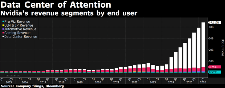 Il mercato attendeva con grande interesse la trimestrale del gigante dei semiconduttori Nvidia, simbolo della nuova era dell’intelligenza artificiale, e i numeri non hanno deluso: l’azienda ha riportato ricavi del 12% superiori rispetto ai tre mesi precedenti e del 69% sullo stesso periodo dello scorso anno. Ancora più impressionante è la performance del segmento data center, che rappresenta oggi circa 88% del fatturato totale, segno di una domanda esplosiva da parte delle big tech, che continuano a investire massicciamente in infrastrutture AI.