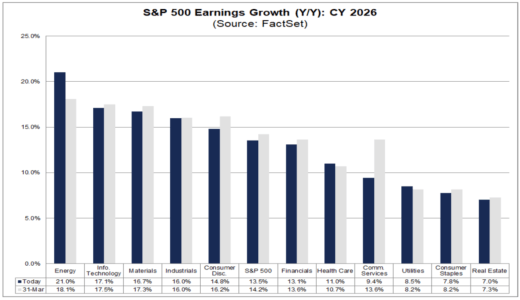 Con il 98% delle società dell’indice che hanno ormai pubblicato i risultati relativi al primo trimestre, possiamo tracciare un bilancio piuttosto solido dell’attuale stagione degli utili, con l’utile per azione delle corporate americane che è cresciuto del 13,3% su base annua, il secondo trimestre consecutivo di crescita a doppia cifra e il settimo trimestre consecutivo in territorio positivo.