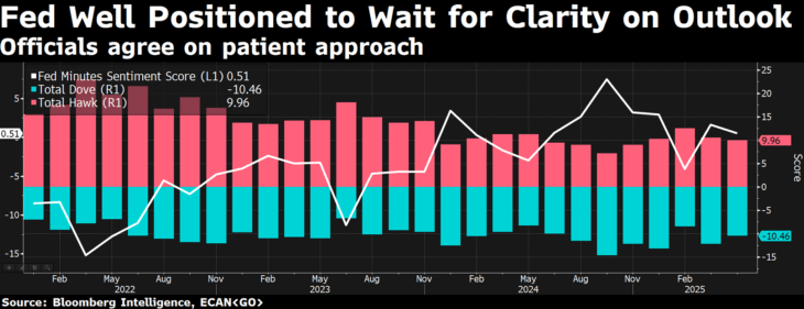 La Fed, dal canto suo, sembra voler prendere tempo. I verbali dell’ultimo FOMC confermano un atteggiamento paziente: la banca centrale è in attesa di maggiore chiarezza prima di procedere con eventuali tagli ai tassi. Il mercato dei futures continua a prezzare tra i due e i tre tagli entro i prossimi 12 mesi, ma la Fed — almeno per ora — non ha fretta, come confermato dall’incontro avvenuto in settimana tra il Presidente Trump e il Presidente della Federal Reserve, Powell. Durante l’incontro, Trump ha espresso il desiderio di vedere un abbassamento dei tassi di interesse, ma Powell ha ribadito l’indipendenza della Fed e ha sottolineato che le decisioni di politica monetaria saranno basate esclusivamente su analisi oggettive e non politiche.
