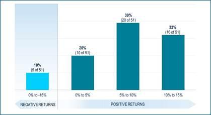 Figura 2 – Dal 1987, quando i rendimenti di partenza erano compresi tra il 7% e l’8%, le obbligazioni high yield globali hanno generato guadagni positivi a 12 mesi nel 90% dei periodi, con rendimenti compresi tra il 5% e il 10% che sono stati i più diffusi.