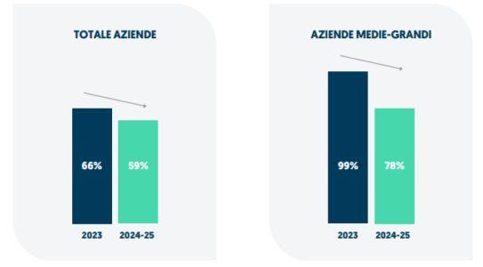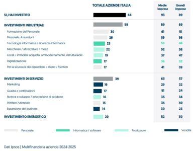 Le imprese italiane si muovono in un contesto ambivalente. Da un lato, lo stato di salute delle aziende italiane è tutto sommato positivo e la propensione all’investimento cresce nelle medie imprese del 7% annuo nel 2024 e del 14% nelle grandi. Dall’altro, lo scenario complessivo, dominato da una grande incertezza geopolitica e, di conseguenza, economica, condiziona il clima operativo andando a influire in maniera negativa sulla situazione aziendale.