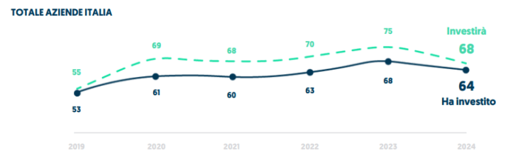 I dati Ipsos confermano il rapporto 2024 dell’Osservatorio Artificial Intelligence del Politecnico di Milano che stima nel 2023 investimenti in AI in Italia per 760 milioni di euro, con una crescita complessiva del 52% rispetto al 2022.