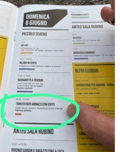 Un piccolo rettangolo d’inchiostro che racchiude mezzo secolo di poesia in vernacolo e malinconia surreale, quella di chi sapeva raccontare “gli ultimi” senza retorica, ma con un’ironia tagliente e una delicatezza che oggi mancano a tutti noi. Sulla vignetta postale campeggia l’immagine tratta dalla copertina del suo diciottesimo album, L’uomo a metà (2003): lo sguardo obliquo, la cravatta storta, il sorriso che sa di tragedia e comicità insieme. Enzo “Faceva il palo nella banda dell’Ortica”, ma anche il cardiochirurgo.