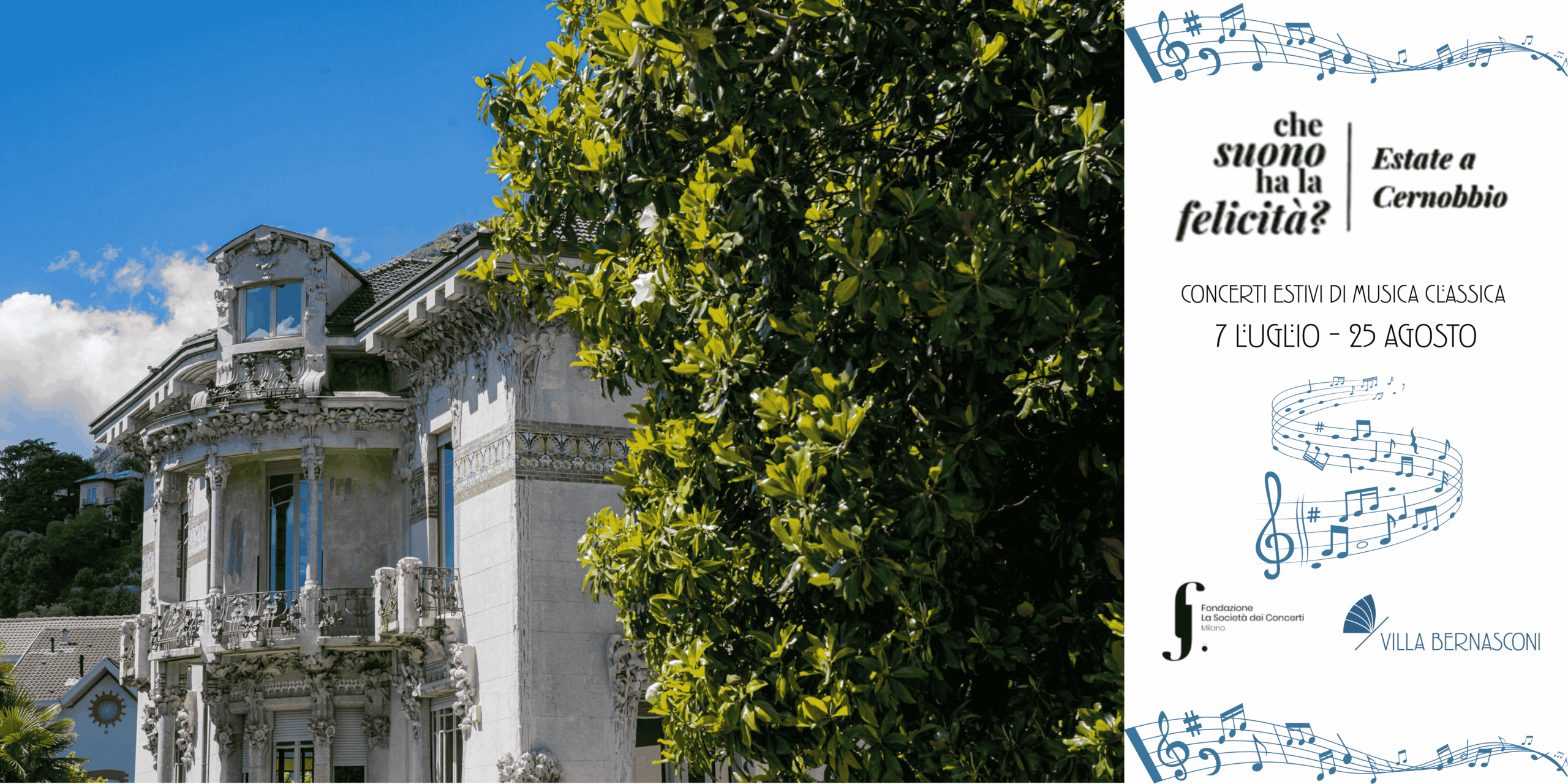 Prosegue con successo il progetto “Che suono ha la felicità?”, ideato e promosso dalla Fondazione La Società dei Concerti di Milano in collaborazione con il Comune di Cernobbio. Dopo il primo appuntamento di febbraio dedicato a San Valentino e quello con le finaliste del Premio Internazionale Antonio Mormone del 23 giugno scorso, la Stagione 2025 entra nel vivo nella splendida cornice di Villa Bernasconi tra luglio e agosto con quattro serate musicali (si è già tenuta la prima il 7 luglio con Priscila Gama: l’arpista e cantante brasiliana ha portato un originale programma che mescolava musica rinascimentale e barocca, raccontando con ironia e teatralità la storia biblica di Susanna)