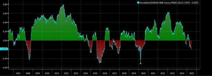 Le correlazioni storiche tra dollaro ed equity stanno saltando, e questo potrebbe portare a vendite importanti di USD per riequilibrare posizioni troppo esposte al rischio cambio.