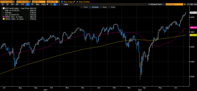 Siamo entrati nel terzo trimestre dell’anno con i mercati azionari globali (espressi in valuta locale) sui massimi storici, ma con segnali sempre più misti sul fronte macroeconomico e settoriale.