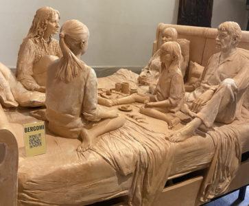 A Casale Marittimo, Val di Cecina, le sculture Ilaria e Valentina e Cubo con figure accolgono i visitatori alla Canonica. Nell’Oratorio di San Sebastiano, situato in Piazza del Popolo, si trova Colazione a letto (2024), una composizione familiare che ritrae l’artista con moglie, figlie e nipoti, evocando tre generazioni come un’antica zattera‑mausoleo della vita.