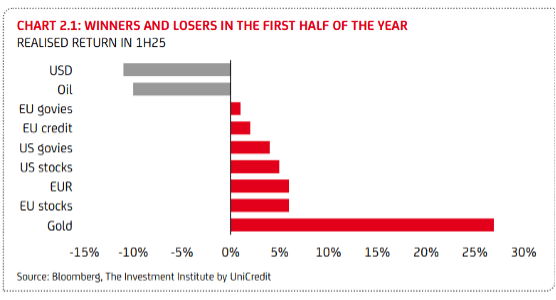 Il primo semestre dell’anno ha visto il debito americano perdere la tripla A (downgrade di Moody’s a maggio) e il dollaro far registrare il peggior risultato della storia dal 1973 (-12% come vedete dal grafico).