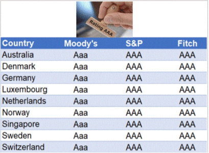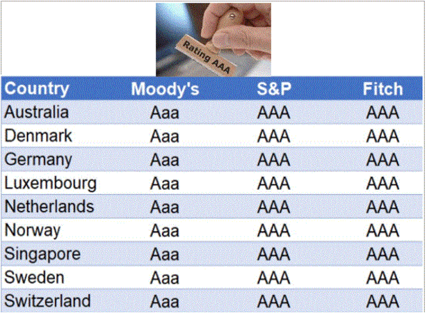 E se guardiamo ai 9 paesi che sono gli unici ad avere la tripla AAA cosa possiamo dedurre?