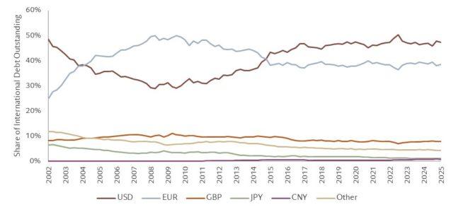 L’unica valuta con caratteristiche più vicine a quelle del dollaro è l’Euro, che tuttavia presenta problematiche difficilmente superabili: la maggior parte del debito pubblico in Europa è emessa dagli Stati Membri, non dall’UE, e la crisi dell’eurozona ha danneggiato l’attrattiva della valuta.