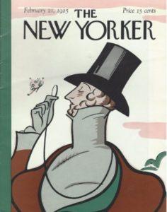 Impossibile parlare de The New Yorker senza menzionare Eustace Tilley, il dandy con monocolo creato da Rea Irvin: un simbolo usato con infinite reinvenzioni in copertina ogni anniversario