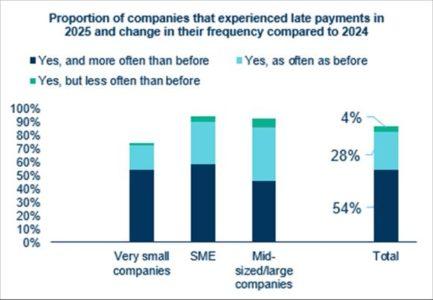 L’86% delle aziende francesi dichiara di aver registrato ritardi di pagamento negli ultimi 12 mesi (rispetto all’82% nel 2023 e all’85% nel 2024). Questo fenomeno colpisce tutti i settori, con una percentuale particolarmente elevata tra le microimprese: più della metà considera ormai “critico” l’impatto sulla propria liquidità.