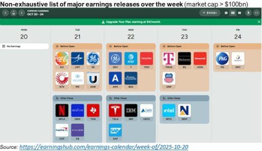 Senza dimenticare, ovviamente, la stagione degli utili, con diverse importanti aziende statunitensi pronte a pubblicare i risultati del terzo trimestre, potenzialmente determinanti per i movimenti sui mercati azionari e/o al loro interno. Tra i grandi nomi del settore tecnologico, Tesla, Netflix, IBM, Texas Instruments e Intel sveleranno i loro ultimi risultati trimestrali: saranno “sufficientemente buoni” da sostenere l’entusiasmo che circonda il boom dell’intelligenza artificiale o le loro previsioni saranno in qualche modo deludenti (con il rischio di invertire parte del recente ottimismo del mercato)? Anche P&G, GE e Coca-Cola saranno tra i principali protagonisti negli Stati Uniti; così come RTX, Lockheed Martin e Northrop Grumman nel settore della difesa, o SAP e Sanofi in Europa.