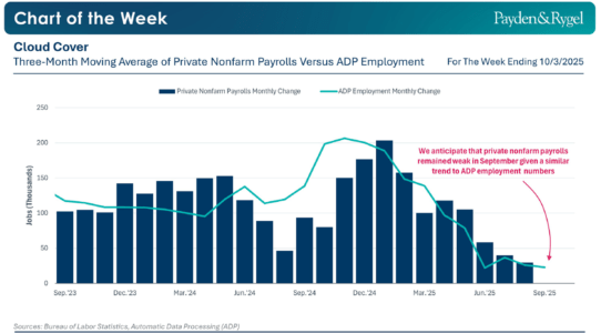 ADP, società specializzata nei servizi di payroll, diffonde statistiche sull’occupazione basate sugli oltre 26 milioni di lavoratori retribuiti attraverso la propria piattaforma. Sebbene tali dati non coincidano perfettamente con le rilevazioni mensili del Bureau of Labor Statistics (BLS) sui lavoratori privati non agricoli, le stime di settembre hanno evidenziato una contrazione di 32.000 posti di impiego, segnalando un persistente indebolimento del mercato del lavoro. Nel medio periodo, e al netto della volatilità mensile, le due serie di dati tendono a convergere, restituendo un quadro coerente di progressivo rallentamento. Alla luce di queste evidenze, riteniamo che i policymaker dovrebbero considerare con attenzione la dinamica occupazionale e procedere a un ulteriore intervento espansivo in occasione della riunione di ottobre della Federal Reserve, indipendentemente dall’evoluzione dello shutdown governativo.