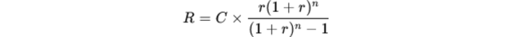 - r = tasso di interesse periodale (annuo diviso 12 per rate mensili)