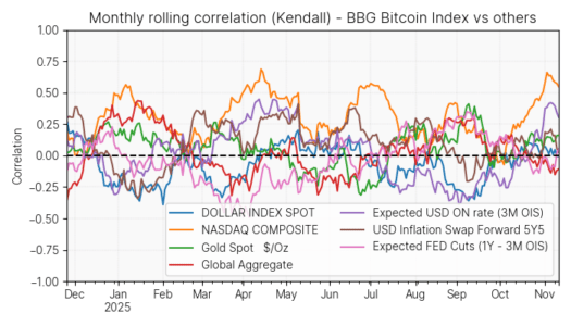 La correlazione delle crypto con i principali fattori macroeconomici resta debole. Il legame di Bitcoin con asset tradizionali come l’oro o con la politica monetaria statunitense non risulta significativo; a richiamare l’attenzione degli investitori e dei trader sono soprattutto le oscillazioni causate dai cambi di direzione dell’esecutivo americano