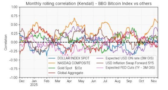 La correlazione delle crypto con i principali fattori macroeconomici resta debole. Il legame di Bitcoin con asset tradizionali come l’oro o con la politica monetaria statunitense non risulta significativo; a richiamare l’attenzione degli investitori e dei trader sono soprattutto le oscillazioni causate dai cambi di direzione dell’esecutivo americano.