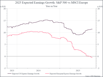 - L’azionario statunitense mantiene una posizione di forza: dopo un terzo trimestre brillante, gli utili societari restano solidi e le stime per il 2025 indicano una crescita a doppia cifra, laddove le previsioni per le società europee si sono progressivamente ridotte fino a indicare una crescita nulla