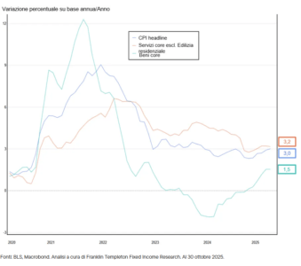 L’inflazione complessiva oscilla intorno al 3% poiché i servizi supercore restano rigidi e i beni core sono in aumento