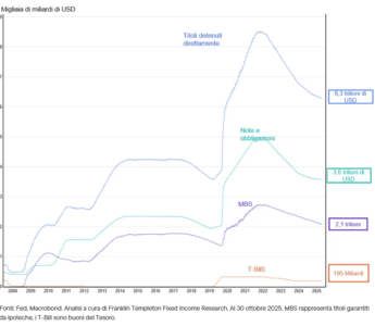 Nella riunione di ottobre, la Federal Reserve (Fed) potrebbe aver effettuato l’ultimo taglio dei tassi di quest’anno, e forse l’ultimo di questo ciclo di allentamento. Allo stesso tempo, però, la Fed sembra pronta a dare una mano in più al governo con il suo fabbisogno di prestiti ancora consistente.