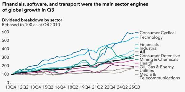 I dividendi globali hanno raggiunto il record trimestrale di 519 miliardi di dollari USA, trainati dal settore finanziario