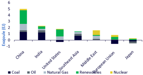 Fonte: IEA (2025), Variazione della domanda di energia in alcune regioni selezionate, 2023-2024