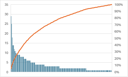 Grafico di Pareto che descrive la distribuzione della numerosità delle iniziative per azienda analizzata
