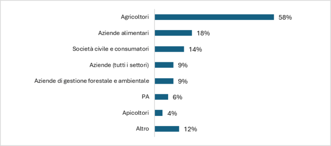 Anche nell’agroalimentare, l’innovazione proposta dalle startup riveste un ruolo strategico. Sono state analizzate 77 startup attive dal 2015 in Europa che operano a favore della biodiversità lungo le diverse fasi della filiera: circa la metà fornisce servizi diretti prevalentemente agli agricoltori, alle aziende alimentari e a quelle che operano nella gestione forestale e ambientale, ma è significativa è anche la presenza di fornitori di tecnologie, che nella maggior parte dei casi favoriscono la riduzione dell’uso di input chimici, delle risorse idriche e del suolo.