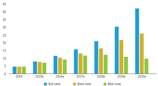 Figura 1: Previsione di crescita della domanda di AI fino al 2030