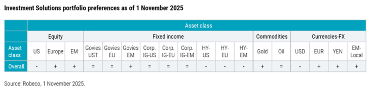 Robeco ritiene possibile un proseguimento del rally azionario, soprattutto nei settori sensibili ai tassi e nelle regioni al di fuori degli Stati Uniti. In un quadro di valutazioni ancora elevate, la capacità di generare utili – in particolare nel settore tecnologico – sarà determinante. Le azioni dell’Eurozona risultano interessanti alla luce delle valutazioni e delle dinamiche macro favorevoli. I mercati emergenti potrebbero beneficiare dell’indebolimento del dollaro e del miglioramento dei flussi commerciali.