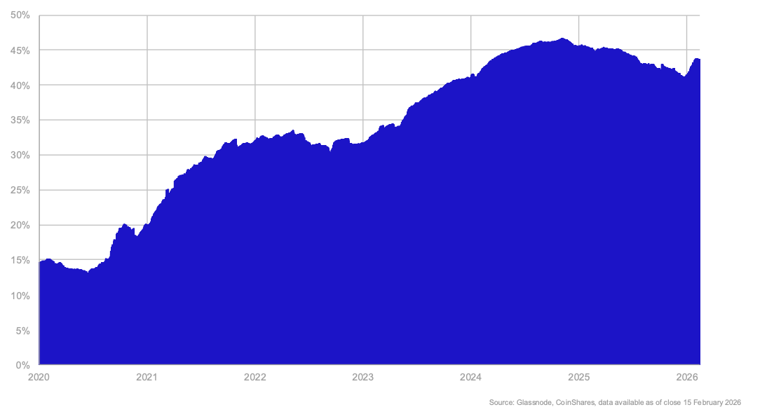 di ETH risulta bloccata in smart contract, una percentuale che è aumentata in modo costante nel