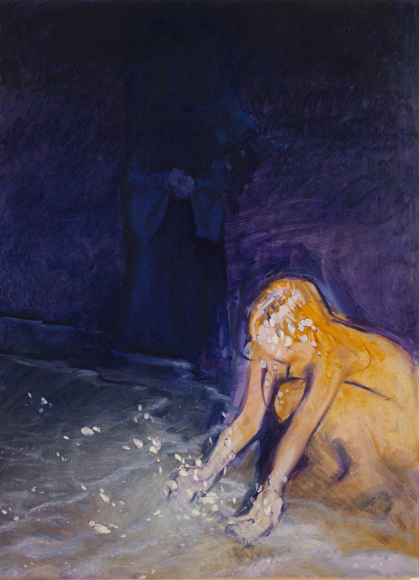 All’interno di questo orizzonte condiviso, i quattro artisti si muovono secondo linguaggi distinti ma comunicanti. Francesca Filicaia lavora su soggetti intimi e silenziosi (volti, oggetti, figure isolate) che emergono lentamente dal fondo, mantenendo l’immagine in uno stato di attesa sospesa. Gemma Mazzotti trasforma il paesaggio in campo percettivo, costruito attraverso un equilibrio mobile tra disegno e colore, trasparenze e opacità. Nikko Mundacruzrestituisce presenze fragili e atmosferiche, segnate da una tensione costante tra vicinanza e distanza, in cui l’immagine diventa campo emotivo. Marila Scartozzi, infine, attraversa la pittura con un rapporto conflittuale con il reale: le sue figure affiorano da stratificazioni instabili, sospese tra emersione e dissoluzione.