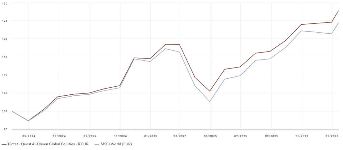 Fonte: Pictet Asset Management, dati dal 28.03.2024 al 14.01.2026, classe R EUR