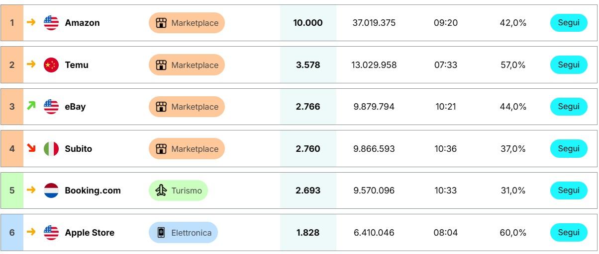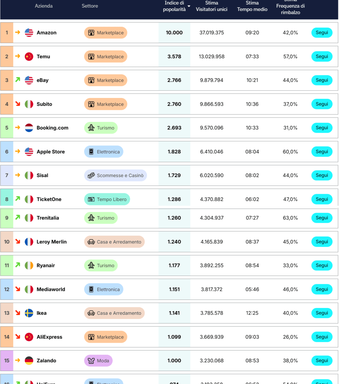 La classifica Ecommerce Italia pubblicata da Casaleggio Associati mostra i siti di vendita online più popolari in Italia e le evoluzioni del mercato ecommerce durante l’ultimo mese.