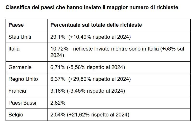 Tra le città in più forte espansione si distingue Genova, con richieste in aumento del 58% e un valore medio di 3.117.411 euro, sostenuta da un interesse prevalentemente statunitense e svizzero. Napoli si posiziona come una delle città con il valore medio più elevato (4.203.846 euro), grazie a una domanda che combina investitori americani ed una crescente attenzione dal mercato spagnolo.