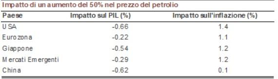 Fig.1: Impatto di un aumento del 50% nel prezzo del petrolio