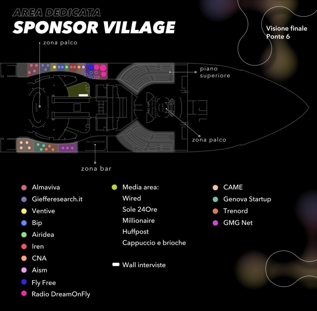 Gli interventi delle aziende si terranno all’interno del Poltrona Frau Arena, mentre sul ponte 6 prenderanno vita le pitch date e lo Sponsor Village, con spazi dedicati al networking e salotti riservati ai partner.