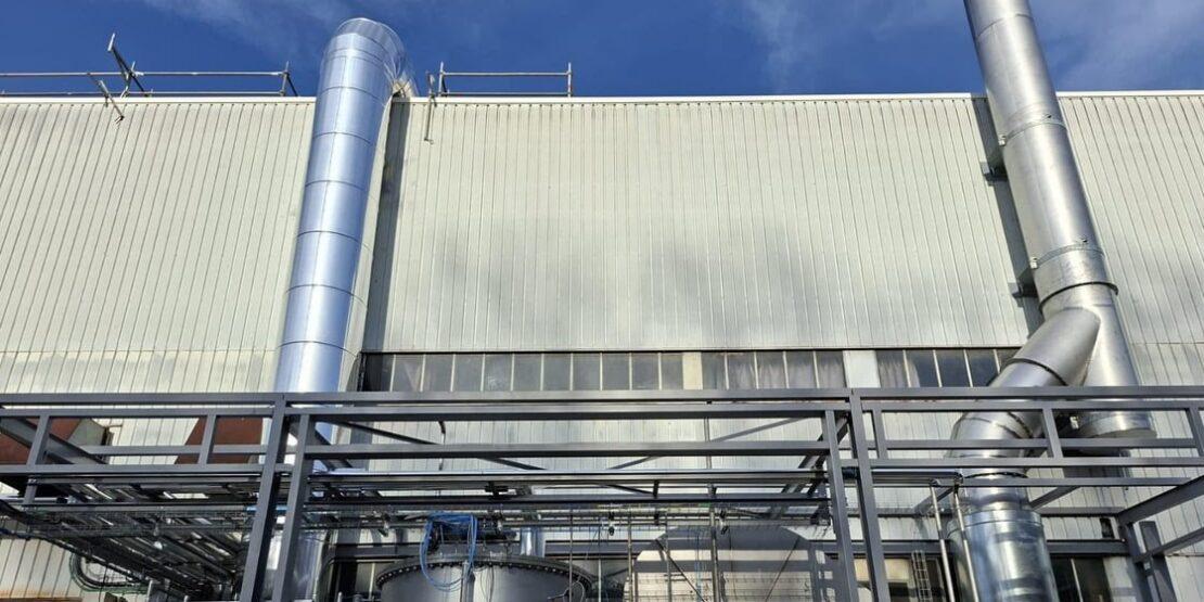 L’azienda disponeva già di un sistema di recupero del calore sui camini dei forni di cottura, ma non funzionava: generava contropressioni all’interno dei forni stessi, rendendolo inutilizzabile. Renovis ha rimosso l’impianto esistente e progettato un sistema centralizzato che raccoglie i fumi di scarico di quaranta camini attraverso centinaia di metri di canalizzazione, completamente scollegato dai forni e bypassabile in qualsiasi momento senza interferenze sulla produzione.